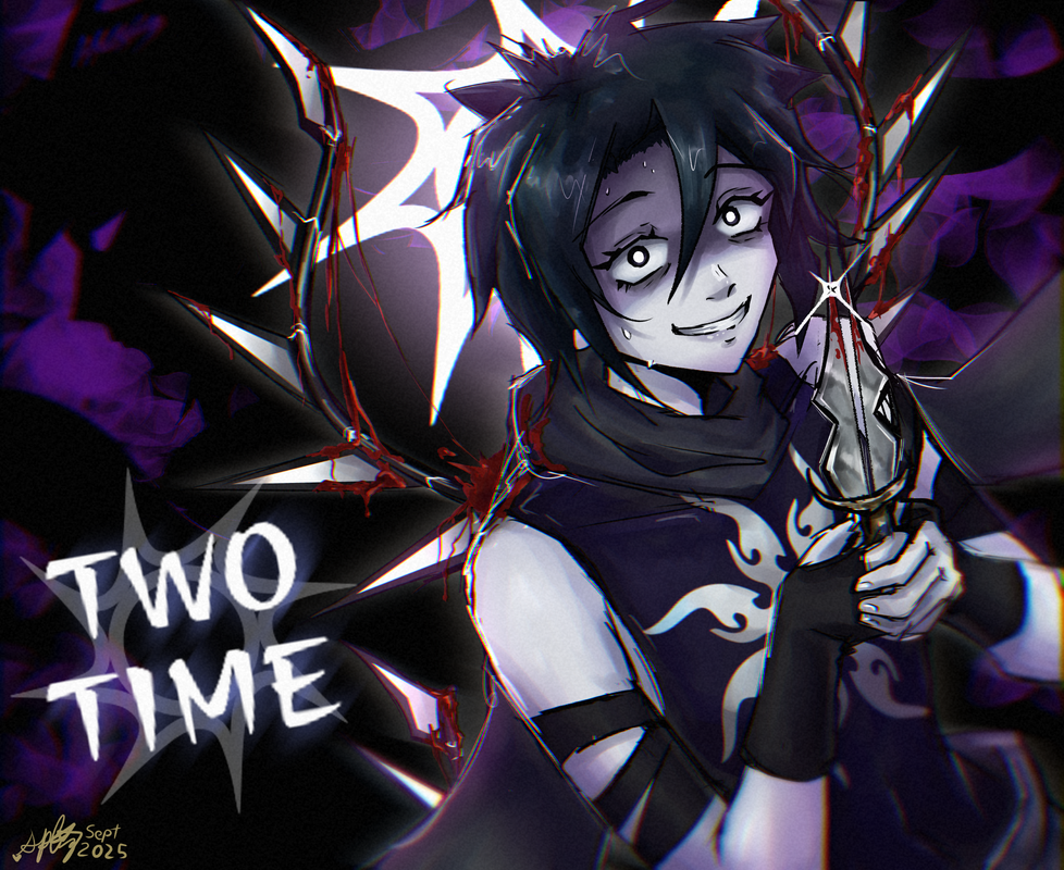 Two Time from Forsaken. What's there not to love about a (not-so)slightly insane enby cultist who killed their best friend but got the regret washed away by obsessive beliefs?