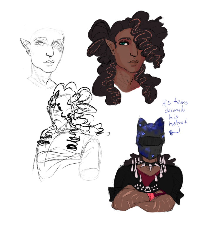 Ruin sketches based off of the emo headcanons (I'll eventually do a proper emo design of him)